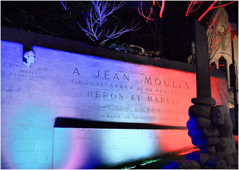 Chef du Conseil National de la Résistance, Jean Moulin est arrété à la suite d'une dénonciation supposée, ou d'une négligence de la part d'un résistant, le 21 juin 1943 à Caluire-et-Cuire (Rhône), dans un pavillon de la banlieue de Lyon , où se tenait une réunion avec les principaux chefs de la Résistance. Après avoir été identifié et interrogé par le chef de la Gestapo Klaus Barbie au Fort Montluc de Lyon, il est transféré à la Gestapo de Paris où il est torturé. Il meurt le 8 juillet 1943 aux environs de Metz, dans le train Paris-Berlin qui le conduisait en Allemagne pour être de nouveau interrogé.