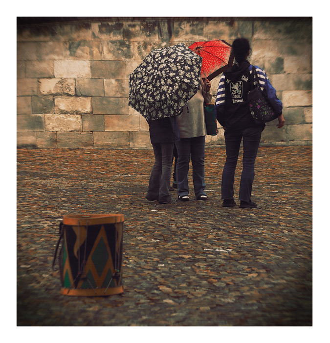 Un joli carré avec un traitement particulier et une compo excentrée avec le tambour...j'aurai bien aimé voir le visage de la personne au parapluie rouge...