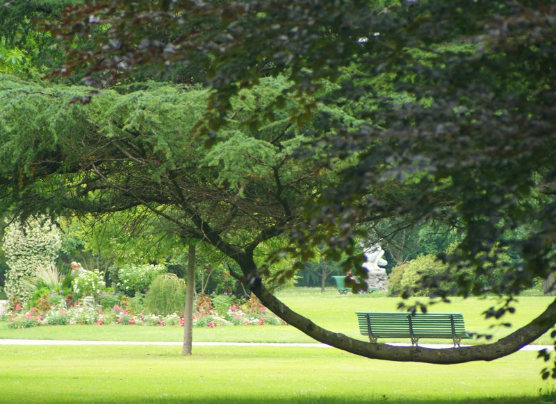 Une belle recherche dans l'arrondi de la branche sur laquelle se balance le banc, cela dit l'ensemble est à parfaire, cette photo manque cruellement d'accroche. Le tronc d'arbre vertical au milieu de la pelouse et la statue (trop blanche) en arrière plan gène trop la lecture de ta photo aussi Bref, beaucoup trop encombrée cette photo
