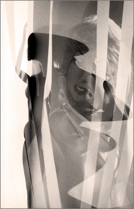 La femme dans tous ses états... Très joli jeu de surimpression, je regrette juste un tout petit peu qu'on ne voie pas mieux l'oeil gauche, tout à droite, celui du plus gros plan. J'aime beaucoup le "visage" et son orientation, qui semble regarder la silhouette, comme on regarde un défilé de mode, un peu...