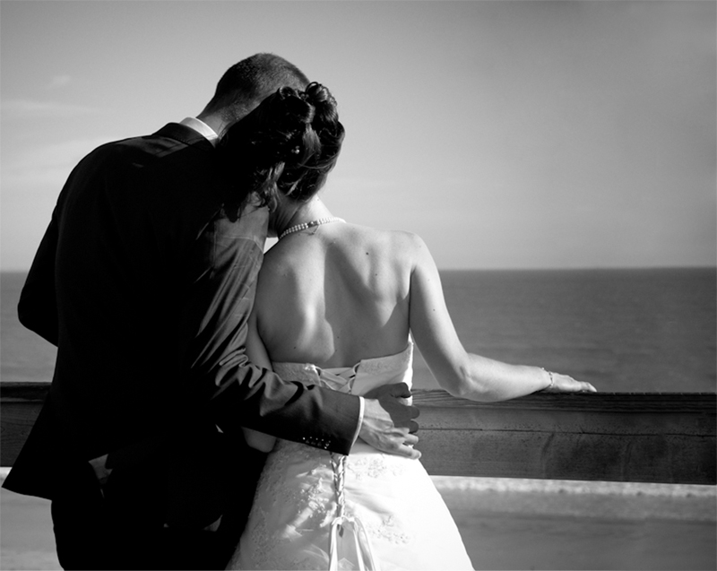Par contre, j'accroche moins sur celle-ci. Même si l'idée est bonne et si l'attitude de la jeune mariée, tendre et se reposant sur l'épaule rassurante de son mari sied bien au paysage, j'ai du mal à identifier ou s'arretent ses cheveux et ou commence l'ombre sur le dos du jeune homme. Le costume me semble bien bouché aussi. Cela dit, je se suis pas sur un écran calibré