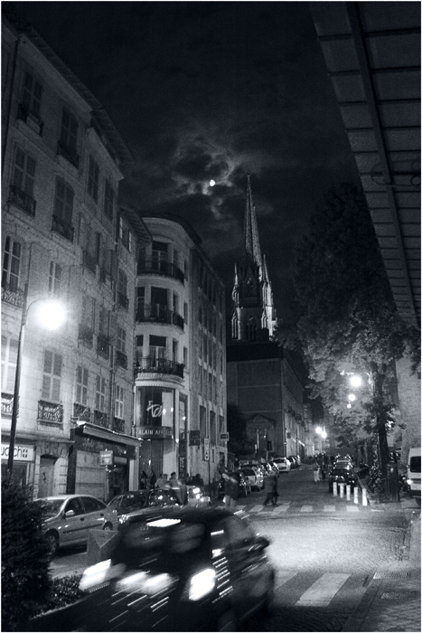 J'aime bien l'ambiance, mais je suis un peu gêné par l'entrée de cette voiture qui attire pas mal le regard. J'aurais préféré un piéton qui traverse à cet endroit.