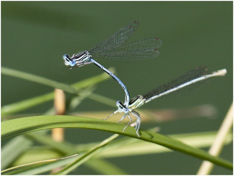 Oui dommage pour l'agrion flou. Il aurait fallu se placer perpendiculairement à la scène pour les avoir nets tous les deux. Difficile d'obtenir une pdc suffisante avec un corps aussi long...