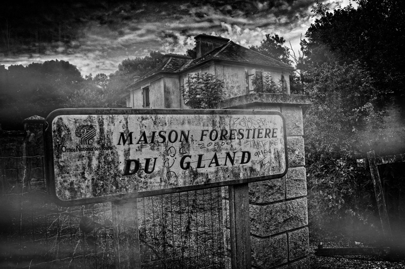 Panneau et demeure dans les arbres interessants, le choix du NB contrasté me parait bon, mais je trouve le traitement too much, notamment la brume ajoutée qui donne un rendu pas naturel du tout.