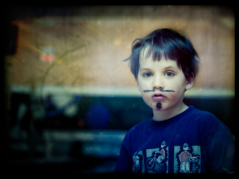 Paradoxes entre l'expression + habillement de l'enfant qui indique un repère dans le temps, et son maquillage + traitement d'image qui indiquent un autre repère..