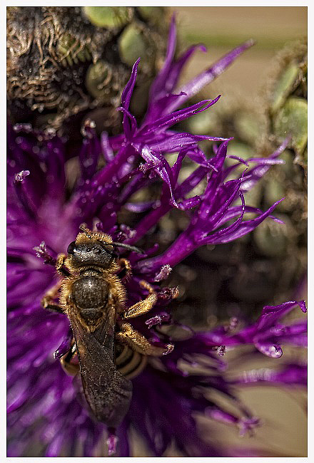 L'abeille semble couverte de poudre d'or... Une vraie macro suisse ou bien !...