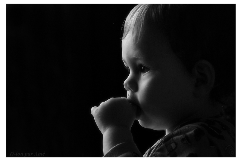 Superbe lumière et pose toute en douceur, j'aime beaucoup ce portrait. J'aurais cependant certainement décentré d'avantage le regard horizontalement en plaçant l'enfant plus à droite pour avoir la bande claire contenant son oeil au niveau du tiers droit de l'image.