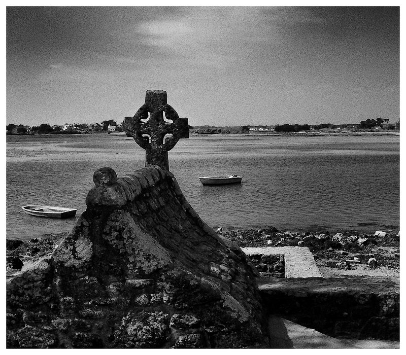 Une très belle image, pondérée , ligne de croix alignée sur l'horizon, barque à droite , barque à gauche, dans la vie on a toujours le choix. La croix nous montre le chemin de la rectitude, son cercle pourtant nous rappelle que ce qui est à droite sera à gauche et ce sui est en bas est en haut.
