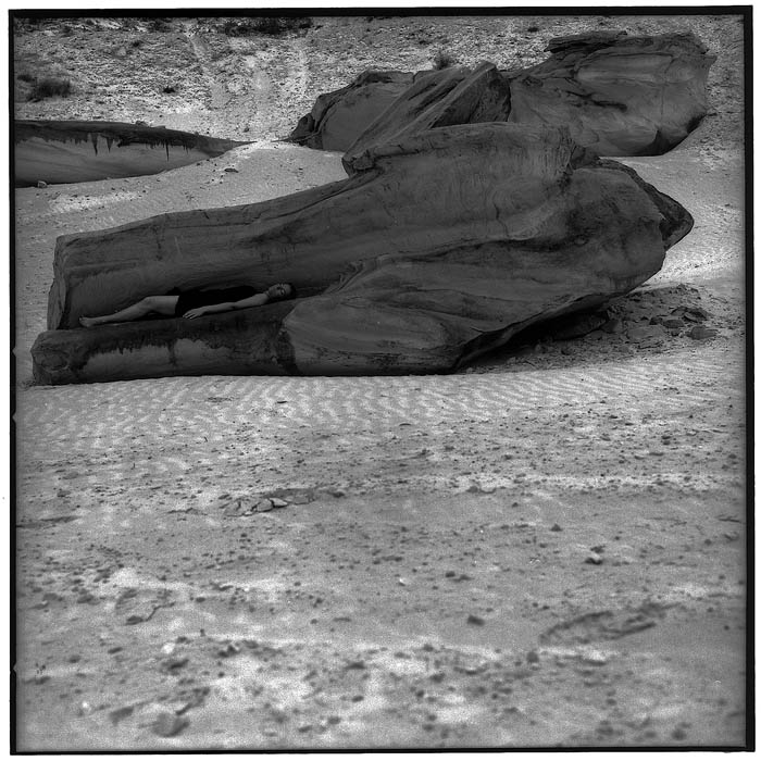 cela vient de la mesure de lumière à la Pdv, j'ai fait un mesure en lumière réflechie et il se trouve que cette roche semble avoir le même indice de reflexion que le corps humain... faire la mesure de lumière sur les noirs du vêtement aurait conduit à une sur-exposition du fait de la forte luminosité issue du sable...