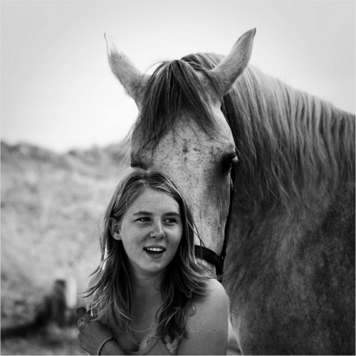 Un bel instantanè...dommage que le deuxième oeil du cheval soit masqué...même si ce n'est pas le sujet principal