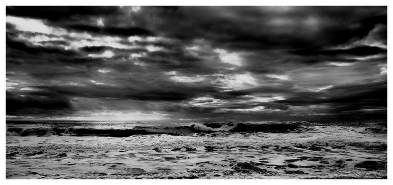 Le choix du N&B enlive touteligne de transition entre le ciel et la mer