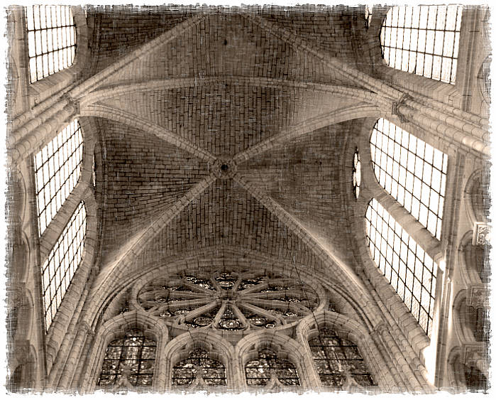 la perspective est bleuffante, on dirait que le sol c'est la partie avec les vitraux et que les voutes correspondent à un mur qui se dresse face à nous.