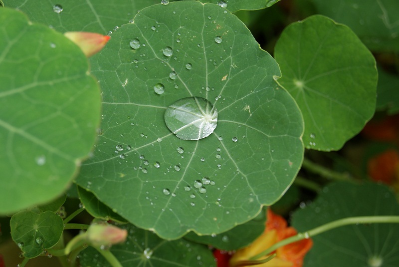 Sujet sympa avec ces gouttes de rosée sur la feuille.