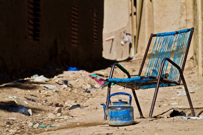 Merci pour les commentaires. Volontairement l'âne derrière en flou pour ne pas attirer l'œil sur lui mais sur cette chaise très typique et la théière qui sont les éléments de vie au Mali. On en trouve partout, comme ces rues jonchées de déchets (malheureusement) et les ânes dans les habitations. A mes yeux, cette photo représente un symbole de ce que j'ai vécu dans ce pays si accueillant.