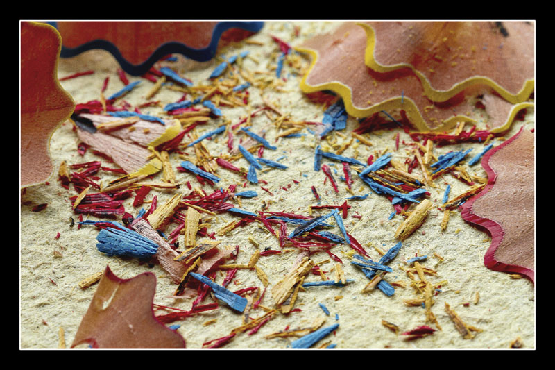 Sympa cette photo, les couleurs sont comme il faut pour moi. J'avais déjà songé à faire quelque chose avec des copeaux de crayons, tu m'as devancé !