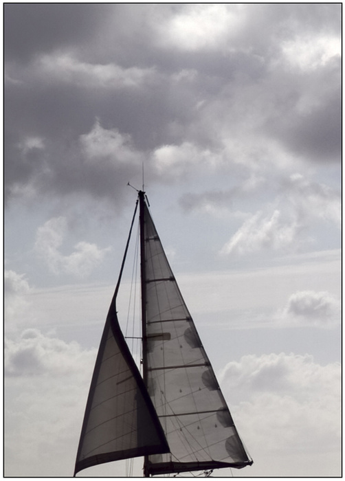 J'ai conservé ce cadrage pour les nuages gris dont les tons rappelent ceux des voiles.