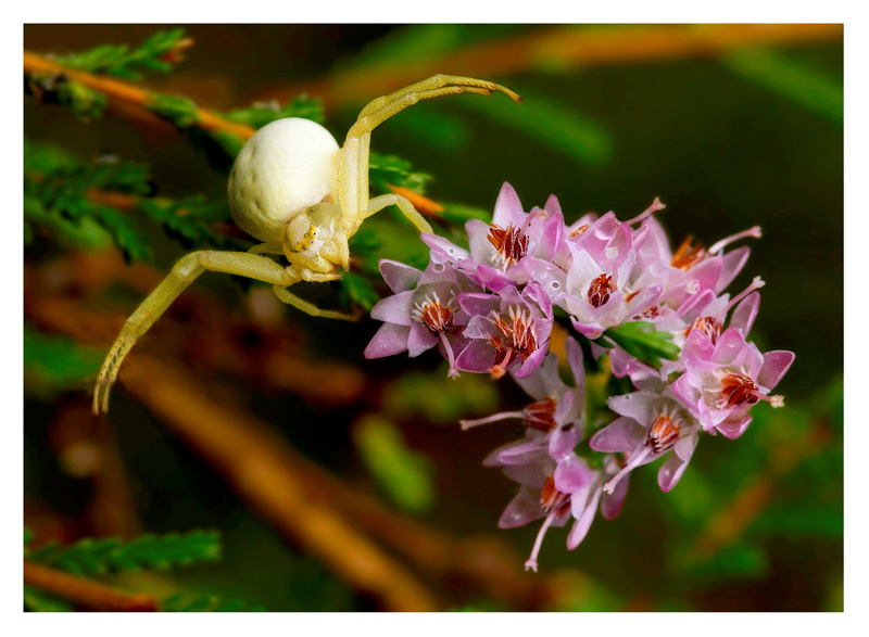 Belle araignée crabe, bien prise dans son attitude caractéristique, belles couleurs.
