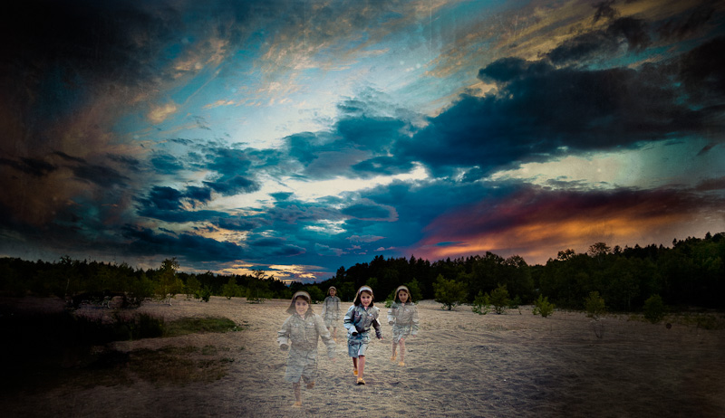 Un ciel hallucinant pour une scène bien étrange...D'accord avec Mike pour le positionnement de la fillette qui devrait être en tête si vraiment elle fuit...son expression d'ailleurs aurait pu être plus dramatique pour participer à cette mystérieuse ambiance...