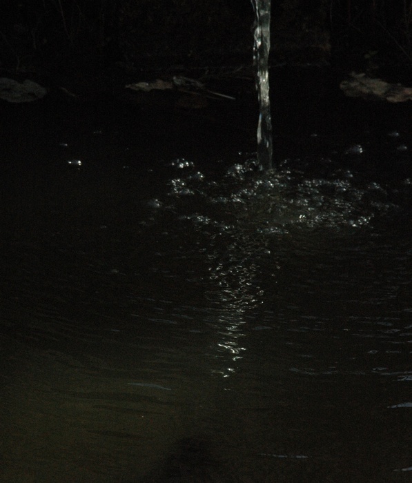 je vois plutôt un filet d'eau style robinet qu'une chute d'eau le fond est trop sombre l'esemble est trop bruité sûrement du à la pose ou au iso plus d'espase autour pour avoir une vue d'ensemble aurai été plus judicieux...