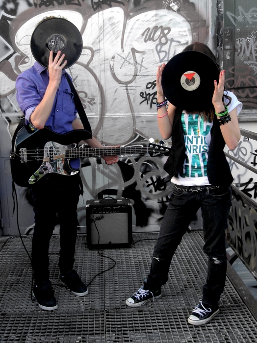 Photo sympa. Les personnage auraient eu porter leur vinyle un peu plus haut pour masquer les cheveux.
