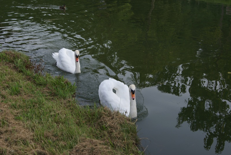 Simplement dommage que ce soit en contre plongée mais la compo est sympa. Ils sont bien placés entre le reflet des arbres dans l'eau et la berge . Il est vrai que si tu avais été à leur niveau, ce ne serait plus tout à fait la même image.