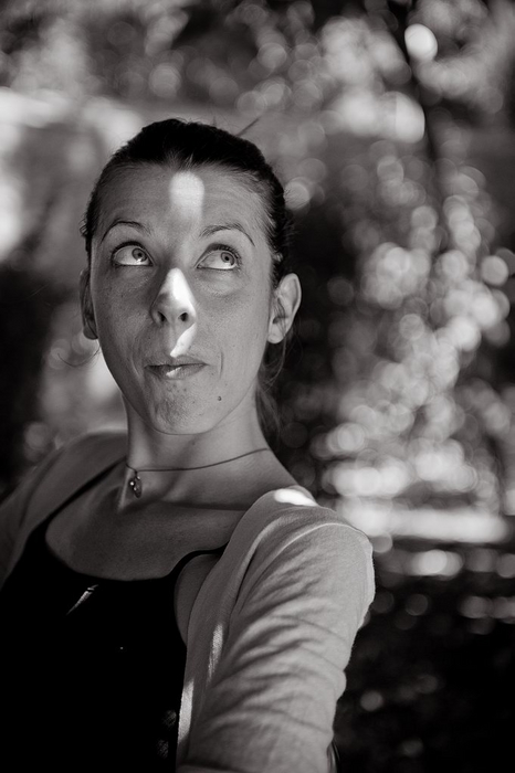 Traitement noir et blanc sympa, mais j'aurais vu un cadrage plus haut, donnant plus de dégagement dans la direction du regard du modèle...