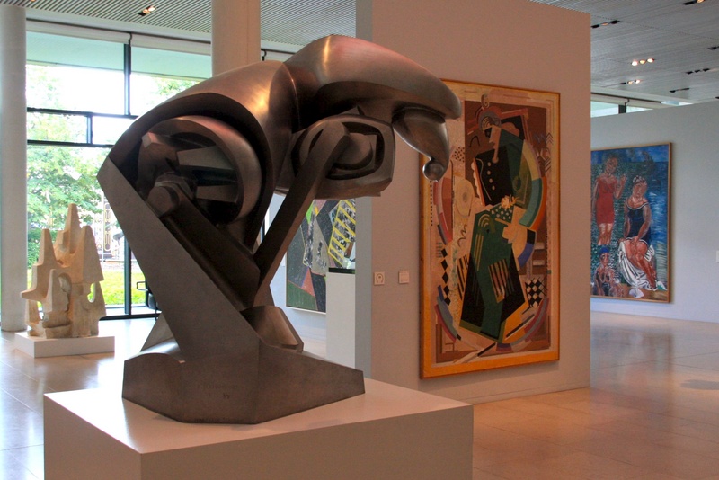 Avec un visiteur dans l'espace libre à droite pour contrebalancer l'omniprésence des œuvres dans ta compo et la force de la sculpture...