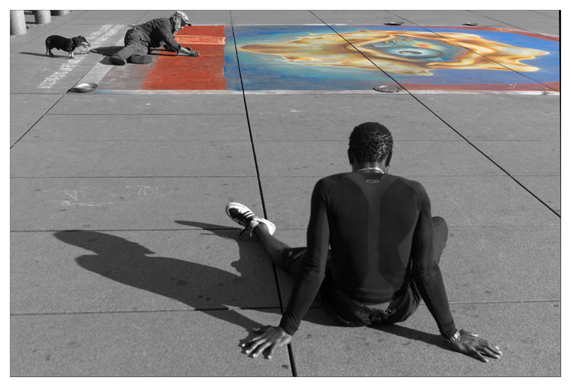 J'ai légèrement recadré afin d'éviter les pieds des badauds. Il me semble qu'ils n'apportaient rien à la photo que je voulais la plus épurée possible.