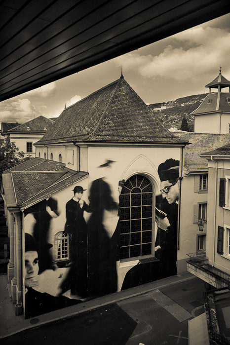Il s'agit encore, dans le cadre de IMAGES à Vevey, d'énormes photos papier collées sur des murs.