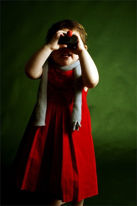 Le titre est bon, mais on distingue mal les jumelles de l'aventurière. Je trouve qu'il y a trop d'ombres sur le visage, mais la petite fille s'en fiche, elle est toute à ce qu'elle fait !.