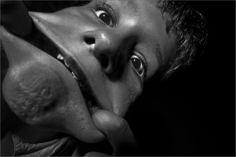 Je suis plus réservé sur le cadrage, j'aurais bien vu une diagonale dans l'axe du visage avec le menton à 45 ° de l'angle de l'image, du coup probablement un cadrage carré.