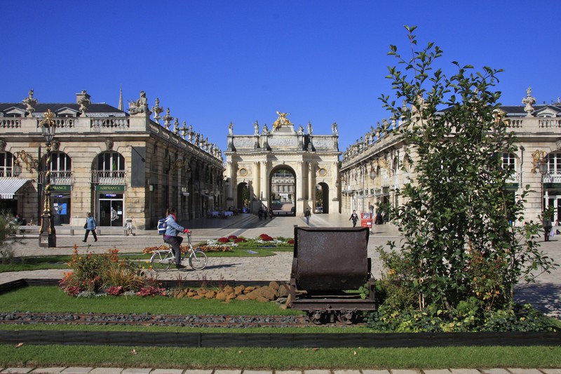 C'est la place Stanislas à Nancy qui est fleurie chaque mois d' octobre. Cette année les décorateurs ont décidé de célébrer la Lorraine en évoquant différentes choses ou qui font ou ont fait sa renommée.