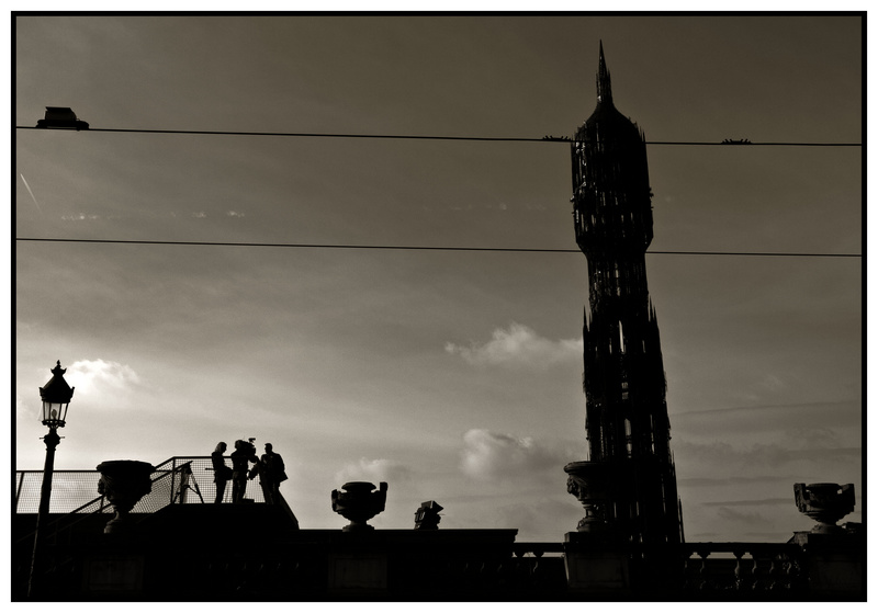 le plus gênant pour moi est la perspective déformée qui casse tout le graphisme de cette image. Tu n'y pouvais rien, c'est dû à ton angle de prise de vue. Des fois ça passe mais là ça passe pas. Le penché gauche de la tour et le penché droit du lampadaire écrasent un peu la compo à mon goût.