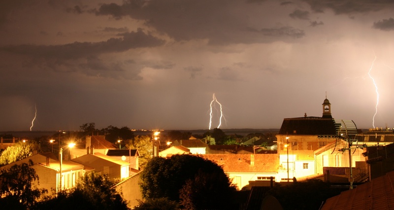 Joli temps de pose ! et je soupçonne un montage ! trois éclaires en même temps sur le même horizon !! mais le résultat est plaisant donc ...