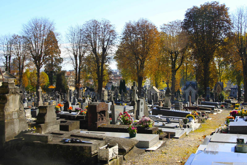 Ici les touristes ne viennent pas au cimetière mais d'habitude à cette époque il y a beaucoup de monde et beaucoup de fleurs.