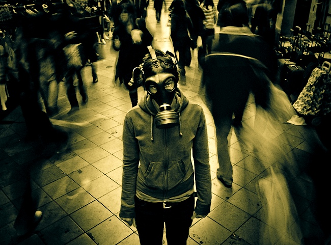 L'atmosphère glauque et le mouvement de foule sont bien retranscrits mais les caddies et valises à droite de l'image nous ramènent trop à la réalité. Un léger recadrage devrait amener un plus.