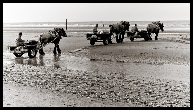 à la pêche aux crevettes avec de beaux brabançons ! j'adore cette image qui rappelle que tout les métiers peuvent subsister !
