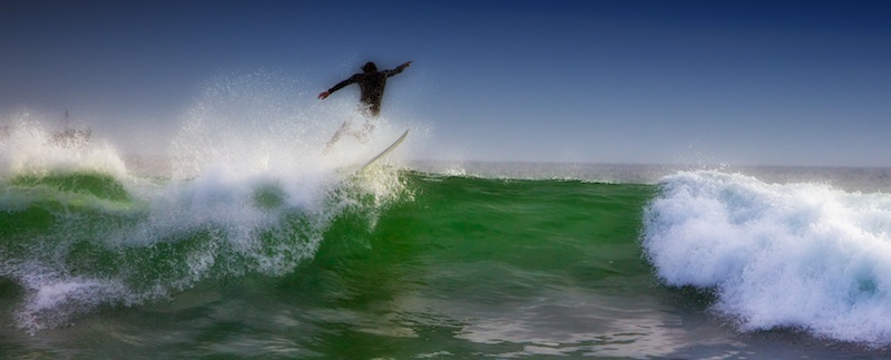 Pourquoi as-tu serré autant au dessus du surfeur ? un peu plus d'espace au dessus, même si tu as choisi un format pano, n'aurait pas été mal, surtout avec ton titre !