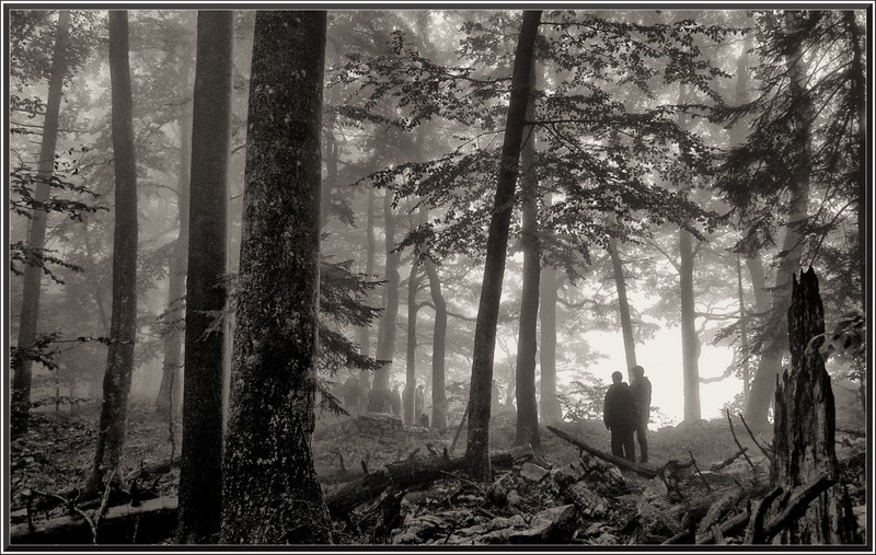 la composition avec les deux personnages à droite juste ou il faut et tous ceux que l'on devine à gauche dans le brouillard..c'est nickel.