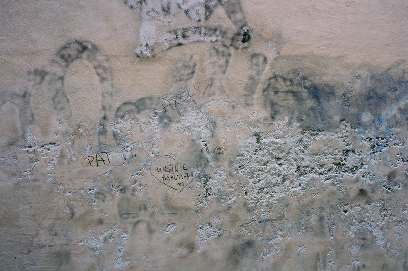 Un peu fouillis et manque de contrastes, pour moi. Il manque soit un intérêt particulier dans les inscriptions, soit mettre l'accent sur la texture du mur qui ne ressort pas assez...