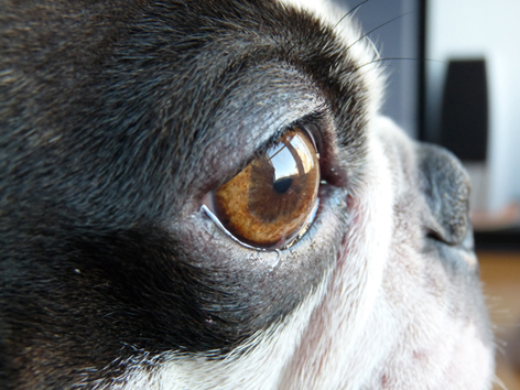 Un œil d toutou qui manque de netteté dans l'ensemble. J'aurai bien vu l'ariere plan moins présent, et avec un peut plus de détaille dans les blancs...
