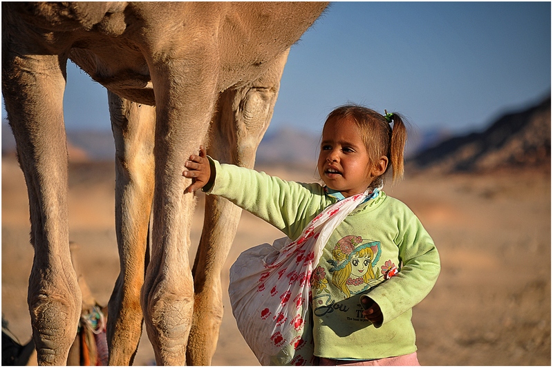 petite fille du Sinai qui portait un sac rempli de petits bijoux et petites babioles , prête à les vendre ...