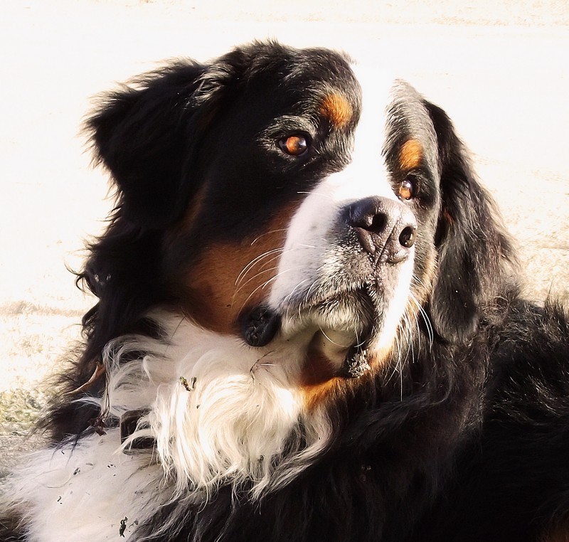 J'aime bien ton cadrage, mais oui, le fond est un peut trop surex, ainsi que le blanc au dessus du nez du toutou.Il manque du détaille dans les poil blanc...