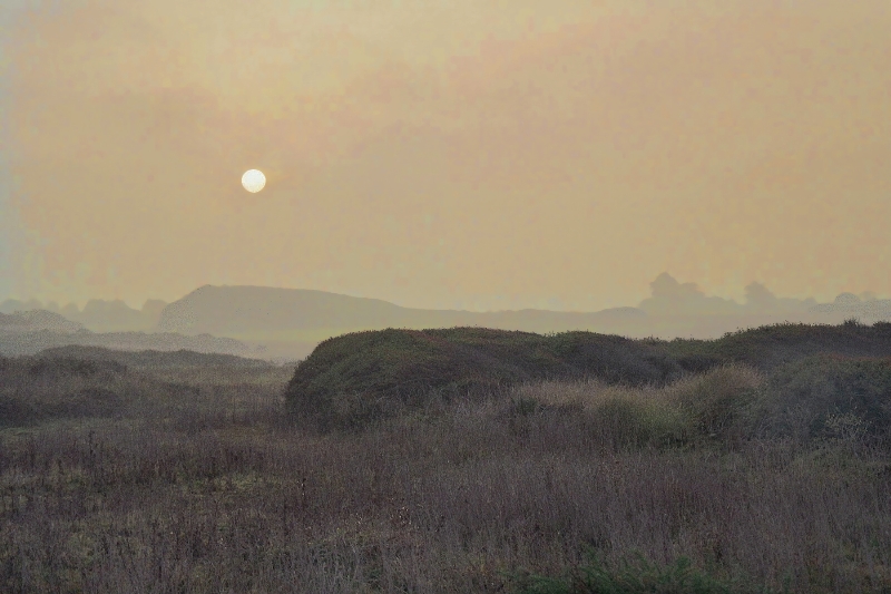 Lever de soleil dans la brume