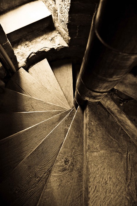 Jolies textures, mais je trouve que le cadrage hésite un peu trop : l'axe de l'escalier se retrouve ainsi centré verticalement et quasi centré horizontalement, ce qui fait perdre pas mal de dynamisme à ta photo pour moi.