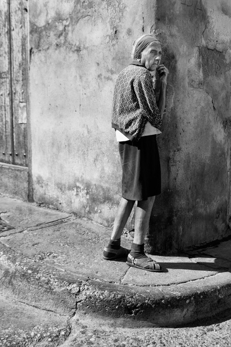Respect une photo extrèmement bien sentie, la vieille dame acculée au mur, entre ombre et lumière, hésitation ...