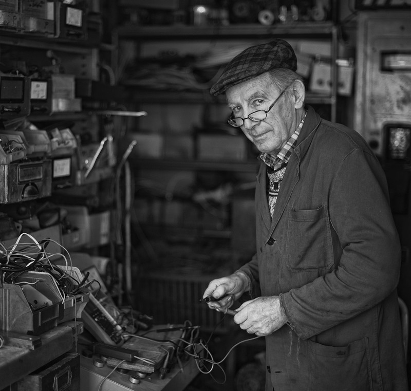 Là le cadrage est impéccable, là lecture est bien compréhensible, l'atelier de ce monsieur a l'air vraiment sensass, j'adore cet environnement qui semble recèler tout un bric à brac.