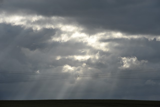 Moi je trouve l'idée intéressante, on comprend ce que tu as voulu montrer, un oiseau seul posé sur le graphisme des fils électriques innondés par quelques rayons de soleil.