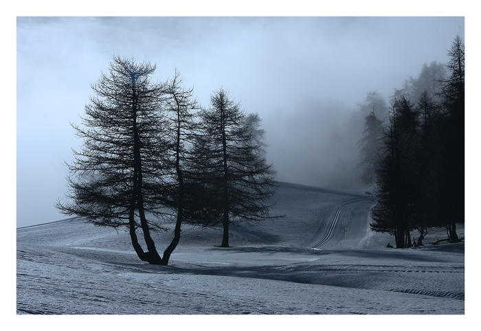 J'aime bien le cadrage avec cette ligne de traces de ski de fond.