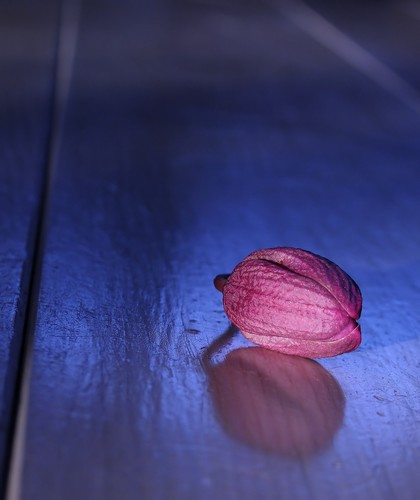 De la douceur dans cette image, j'aime l'opposition des couleurs, et le reflet. Les deux lignes de part et d'autre apportent de la profondeur, bien vu.